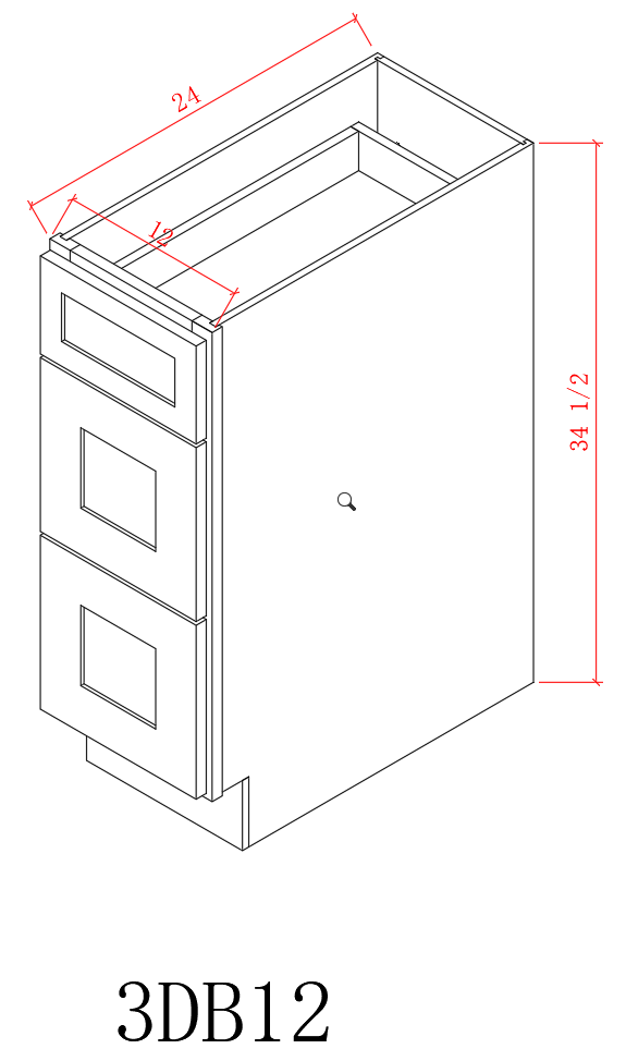 FRAMED KITCHEN CABINET 12 INCHES 3 DRAWERS BASE